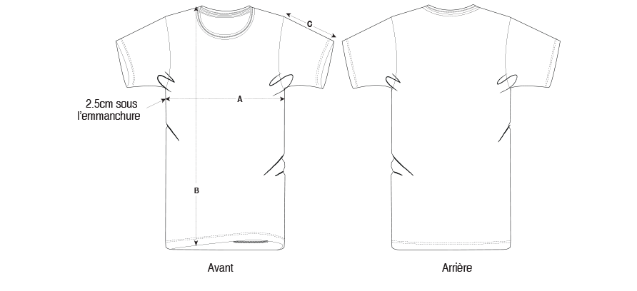 | C — Longueur des manches | 19,5 | 20,5 | 21,5 | 22,5 | 22,5 | 23,5 |